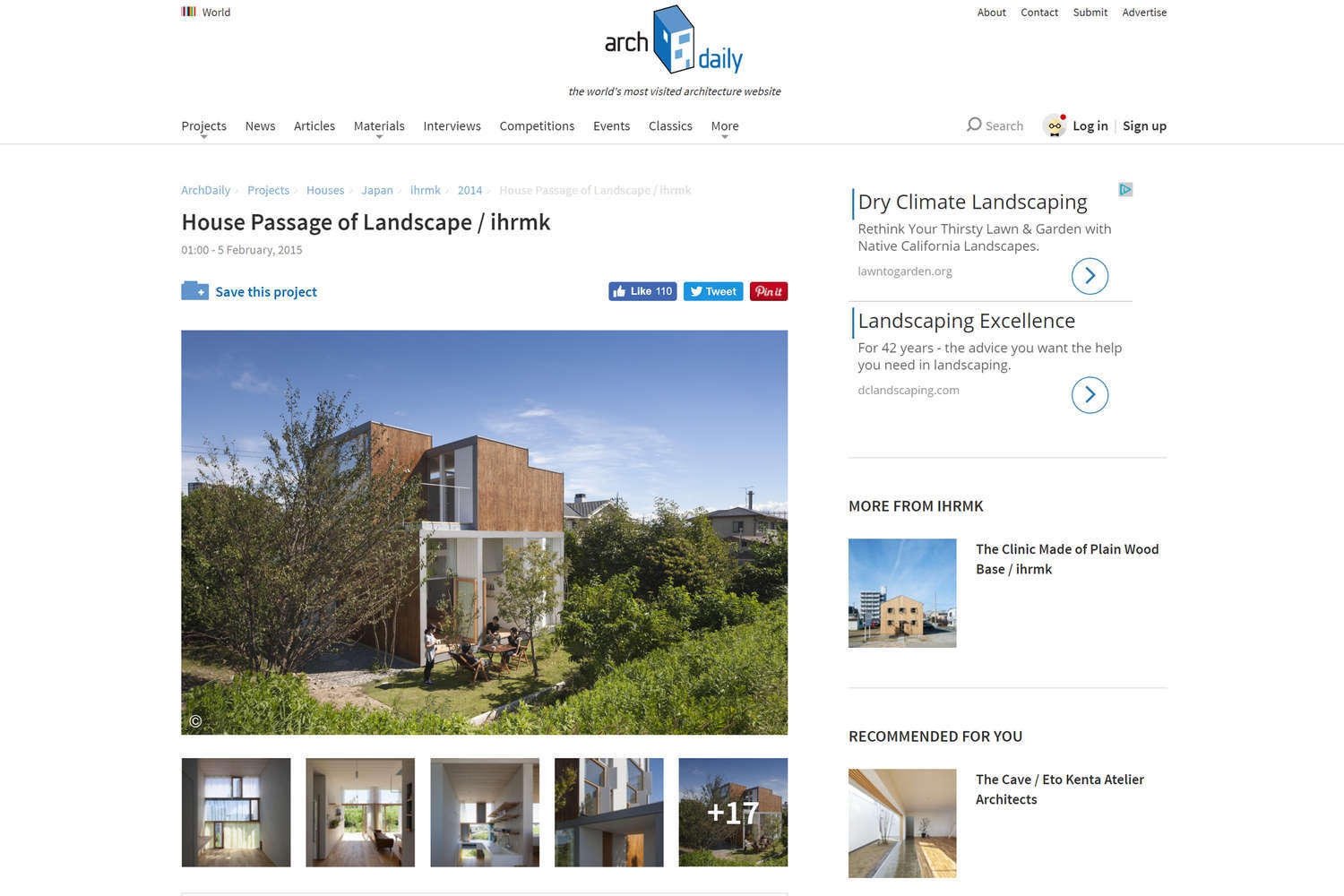 2015.2.5 Publication Archdaily ArchDailyに風景を通す家が紹介されました。 Passage of Landscape was introduced in ArchDaily.