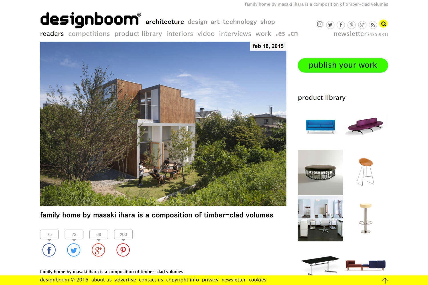 2015.2.18 Publication Designboom Designboomに風景を通す家が紹介されました。 Passage of Landscape was introduced in Designboom.