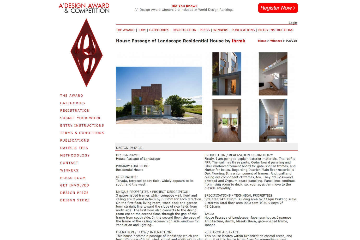 2015.3.21 Award A’ Design Award 風景を通す家がBronze A’ Design Award 2015を受賞しました。 Passage of Landscape won the Bronze A' Design Award 2015.